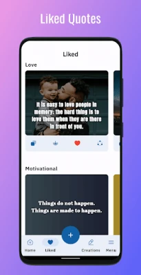 Categories are conveniently grouped for easy access. Tap on the quote widget to instantly change the displayed quote. Personalize any quote by tapping to change its gradient, color, or background image. Unleash your creativity with our quote designer or maker and save your masterpieces to your gallery.