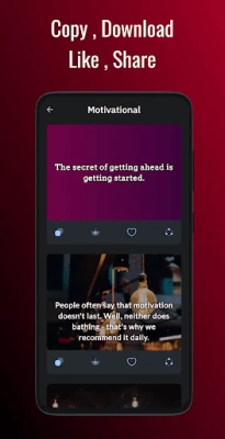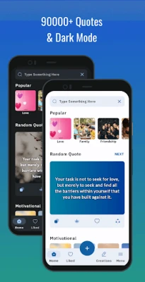 Like, copy, download, and even edit your favorite quotes. Share your inspiration with friends and family on Facebook, WhatsApp, Instagram, and other platforms. Discover fresh perspectives by reading random quotes or save your favorite quotes to browse them later. Enjoy our collection of unique picture quotes. Select your preferred app theme color to customize your app's look and feel.