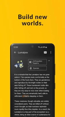 • Build worlds with exciting creatures, locations, magic systems, and more.