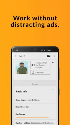 • Keep track of what makes your characters unique with custom character sheets for your novels, short stories, and TTRPGs.