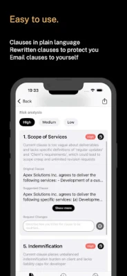 Receive AI-rewritten alternatives to risky clauses that you can share directly with your lawyer.
