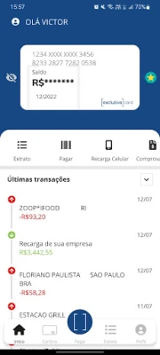 Livre de faturas Consulta de saldo a qualquer hora Pagamentos de boletos Recarga de celular Produtos e serviços para o seu dia a dia, e muito mais