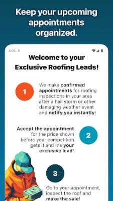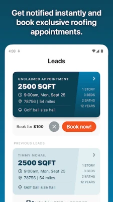Exclusivity is key in the competitive roofing industry. With the Exclusive Roofing Leads app, small to medium roofing contractors and companies gain a significant advantage. Our platform offers confirmed appointments for home roof inspections that are exclusive to the first roofer who acts—no competition, no shared leads, just your direct route to new business.