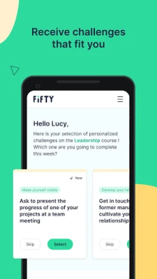 Knowing is good. Doing is better! Achieve (at last) your professional development goals with Fifty. Instead of giving you theoretical advice, we recommend personalized actions to be carried out in real life on the theme of your choice.