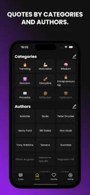 Authors and categories: Explore more than 15 authors and 9 categories of quotes, such as motivation, wisdom, entrepreneurship, and more.