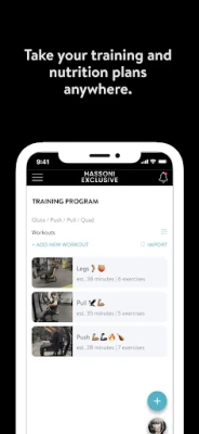 With the Hassoni Exclusive App, you will have access to workout programs designed specifically to help you reach your fitness and health goals! You can follow & track your workouts, your nutrition, your lifestyle habits, measurements and results–all with the help of your coach.