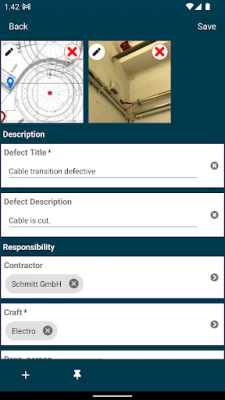 You can classify defects with all relevant information such as description, location, responsibility, costs and pictures. After free reporting of the subcontractor, you can download relevant